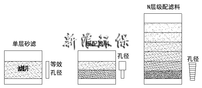 為了提高過(guò)濾效率,采用雙層或多層濾料,在確保過(guò)濾精度的前提下,可以提高速度及納污量。