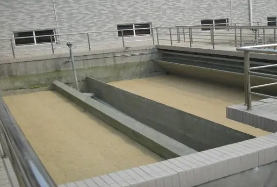 氣沖洗:打開進(jìn)氣閥,開啟供氣設(shè)備,空氣經(jīng)氣水分配渠的上部小孔均勻進(jìn)入濾池底部,由長(zhǎng)柄濾頭噴出,將濾料表面雜質(zhì)擦洗下來并懸浮于水中,被表面掃洗水沖入排水槽。