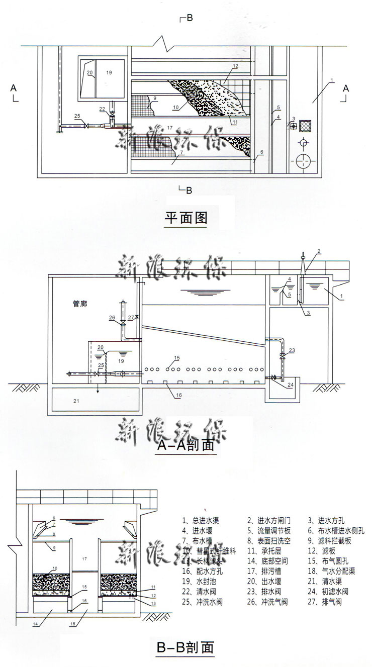 濾料使用壽命長,并設有多功能攔截裝置,正常10年不用添加和更換濾料,管理方便;